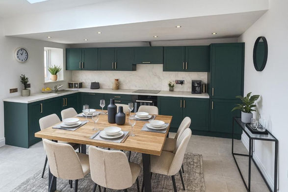 • Integrated appliances: oven, hob, fridge-freezer, microwave, dishwasher, washing machine and tumble dryer
